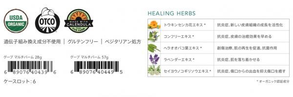 優れた殺菌力と消炎力で皮膚の炎症を鎮静し保護してくれる自社有機栽培のカレンデュラ・ラベンダーエキス・トウキンセンカ花エキス・コンフリーエキス・ヘラオオバコ葉エキス・セイヨウノコギリソウエキスのオーガニックハーブを厳選ブレンドし、紫外線や乾燥などで荒れた手指やお肌・唇・髪・虫刺されなどの全身ケアに使えるマルチバームです。