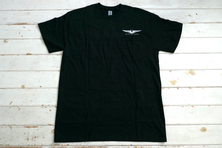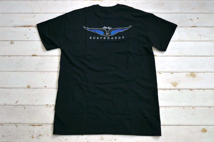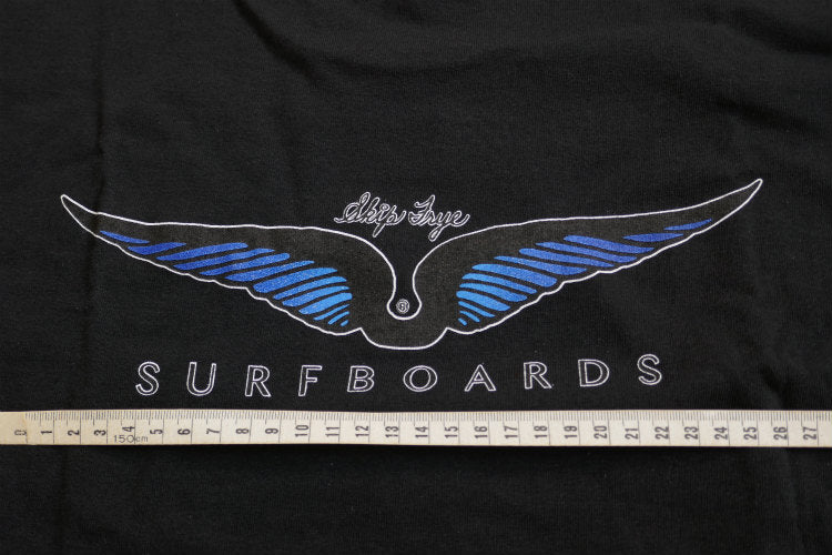 Skip Frye スキップフライ Frye Wings サーフィン ブラック×ブルー Tシャツ ポケットTシャツ Mサイズ カリフォルニア 老舗 サーフボードブランド ステッカー付き