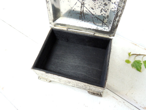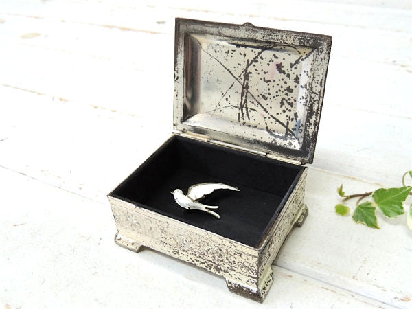 フラワーモチーフ・シルバー 脚付き・アンティーク・ジュエリーボックス・宝石箱・アクセサリーケース