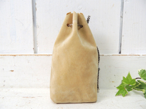 材質はビニール製、表面はスエードのような加工です。 上部片方サイドに袋を綴じるためのヒモが付いています。
