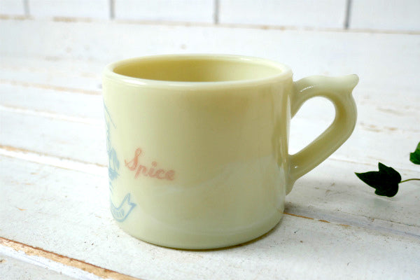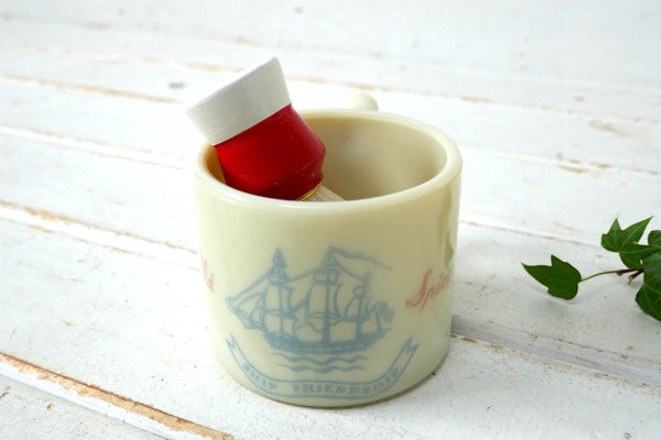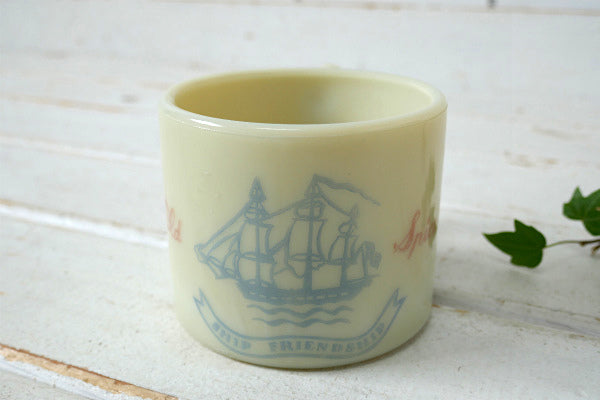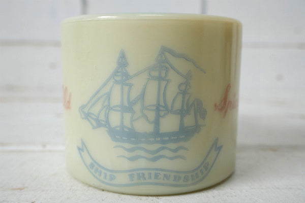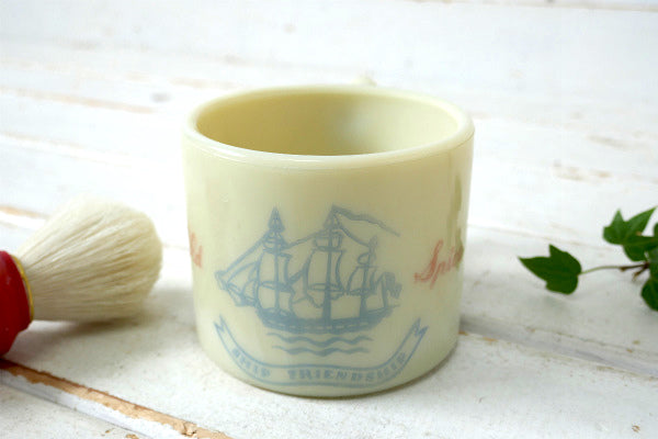 アイボリーホワイト色のカップにブランドのトレードマークである航海船のイラストと、【Old Spice・SHIP FRIENDSHIP】の文字が入っております。