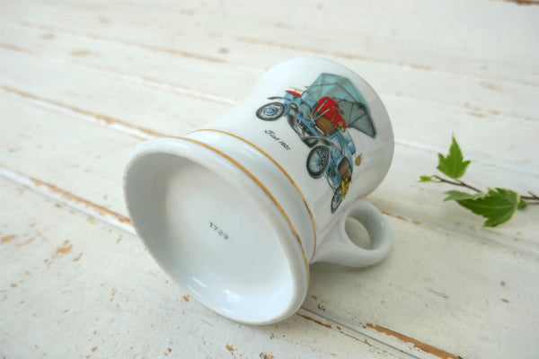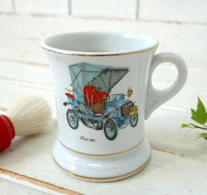 アメリカ西海岸・カリフォルニア州・オークランドで見つけました・・『Fiat 1901』のクラシックカー柄・陶器製・ヴィンテージ・マスタッシュカップです。