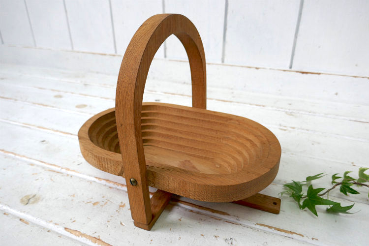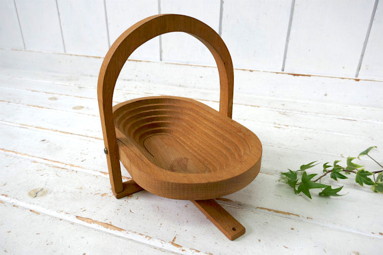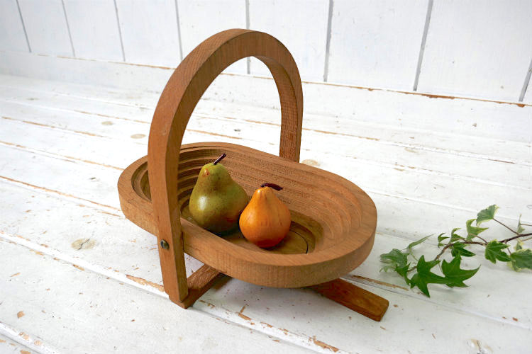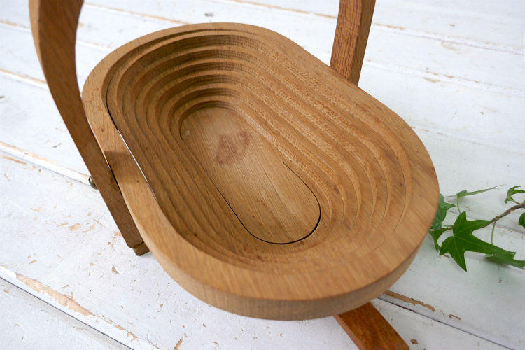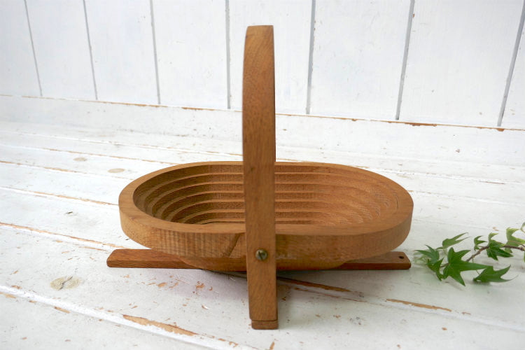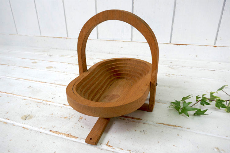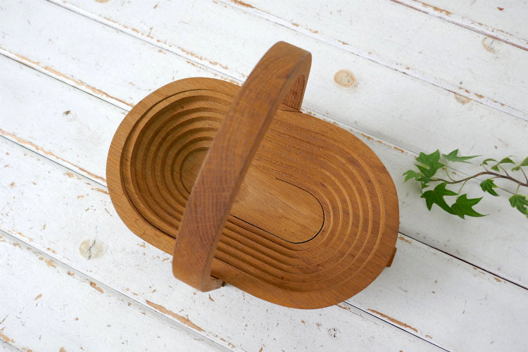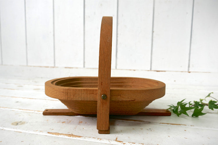 ナチュラル オーバル型 立体 折りたたみ式 木製 ヴィンテージ バスケット フルーツバスケット ウッドバスケット USA