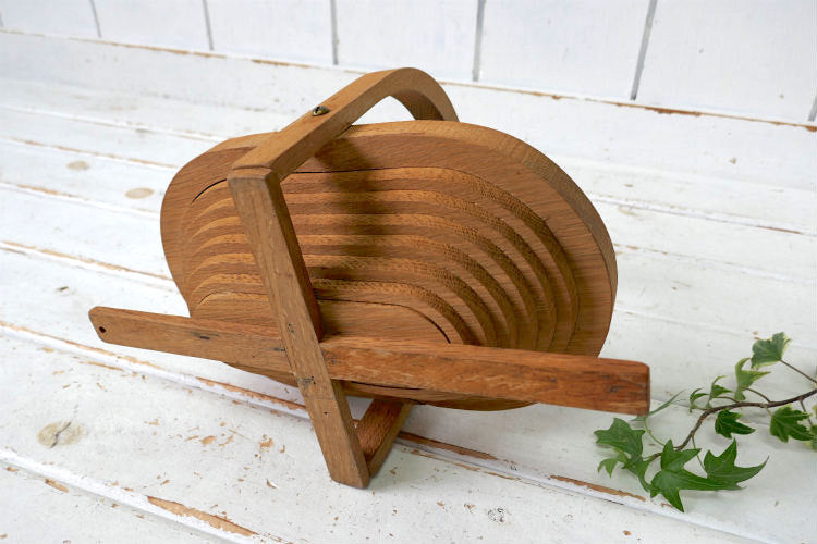 アメリカ西海岸・カリフォルニア州・サンフランシスコで見つけました・・折りたたみ式のオーバル型・ヴィンテージ・木製バスケットです。