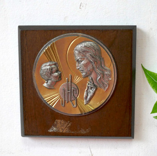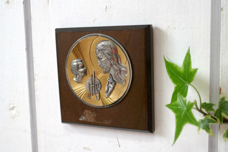 イエスキリスト JHS JESUS HOMINUM SALVATOR イタリア製 アンティーク 壁飾り オブジェ 聖品
