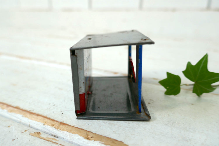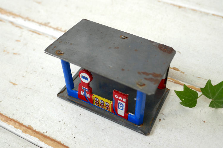 サービスステーション(ガソリンスタンド)の、小さなブリキのオモチャです。