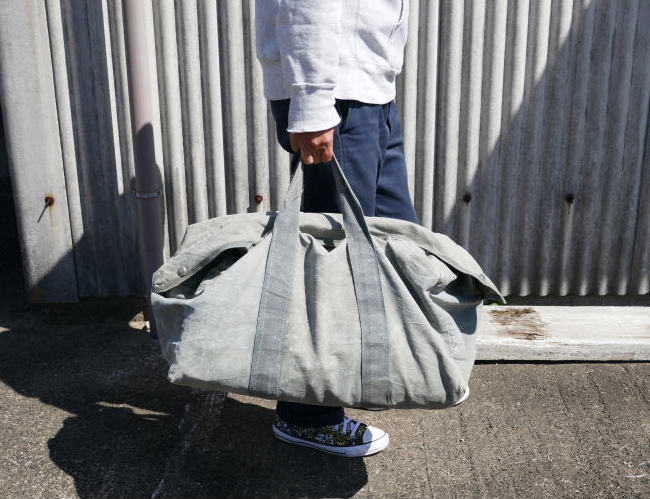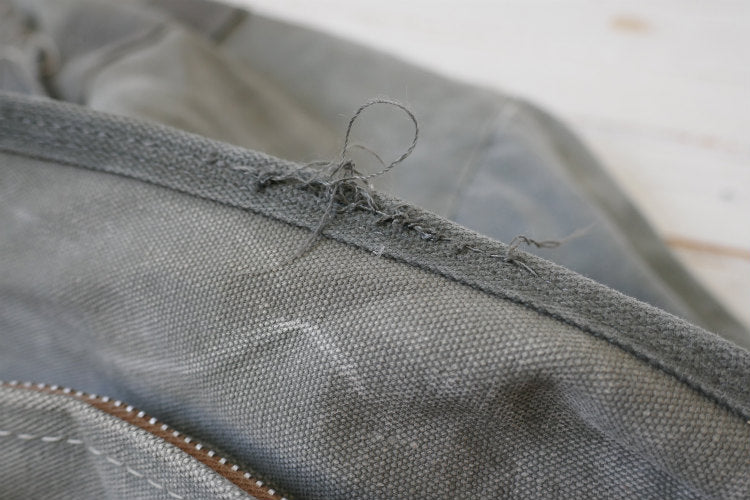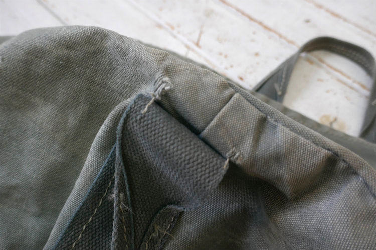 カラーはオリーブグリーン、材質は丈夫な造りのコットンキャンバス素材です。