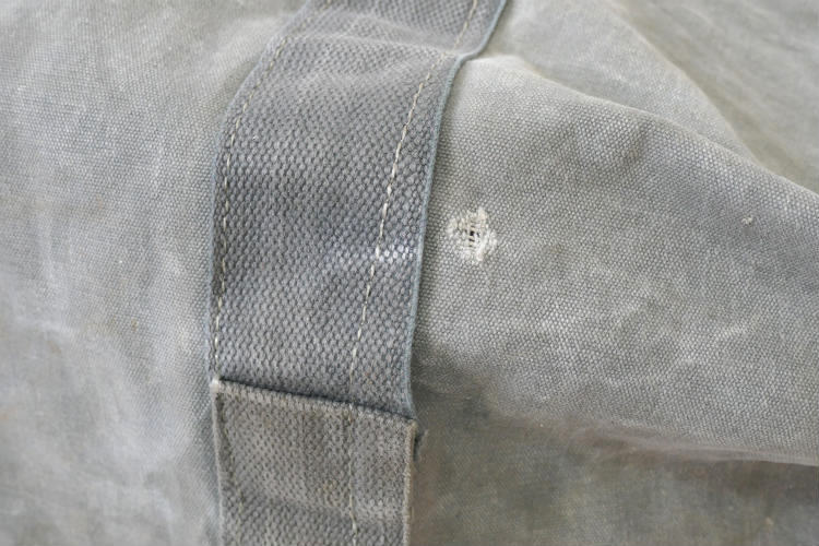 経年による多少のヨゴレ・シミ箇所・持ち手根元のイタミ・生地のホツレ箇所・ボトム一部にに小さな穴等ございます。