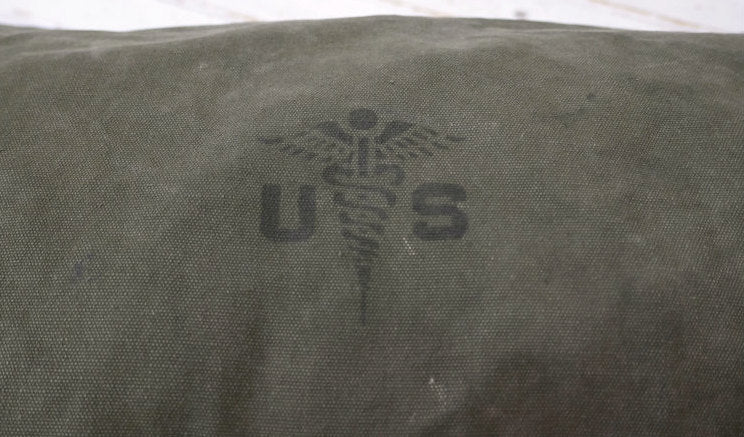 カバーに【US】&医療隊のロゴ、カバー内側に【C.R. DANIELS, INC. 6545-00-926-6660 CASE. HOSPITAL LINENS. SMALL 】のステンシルが入っています。