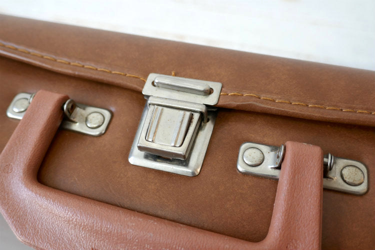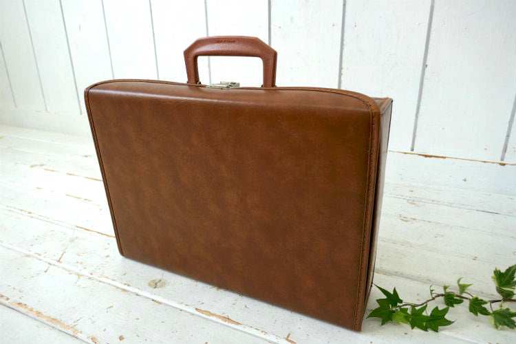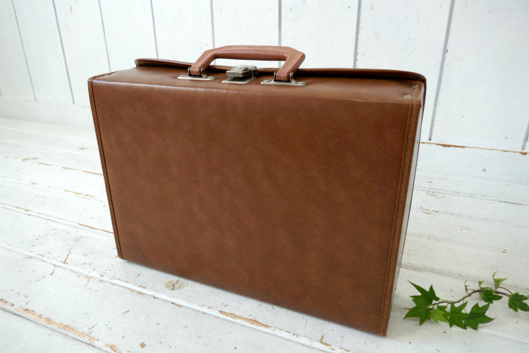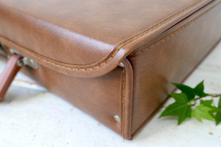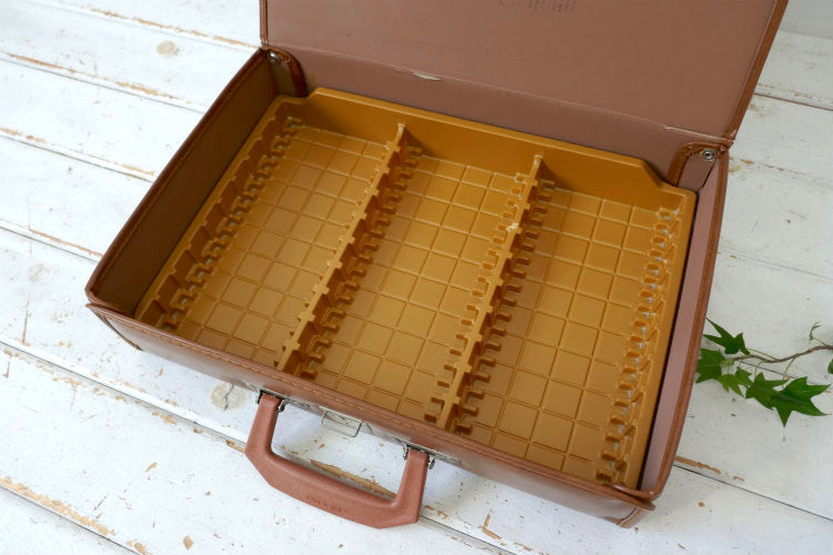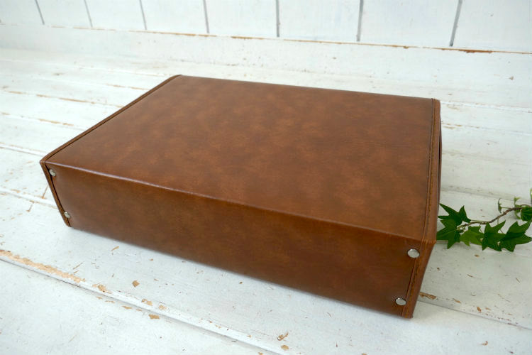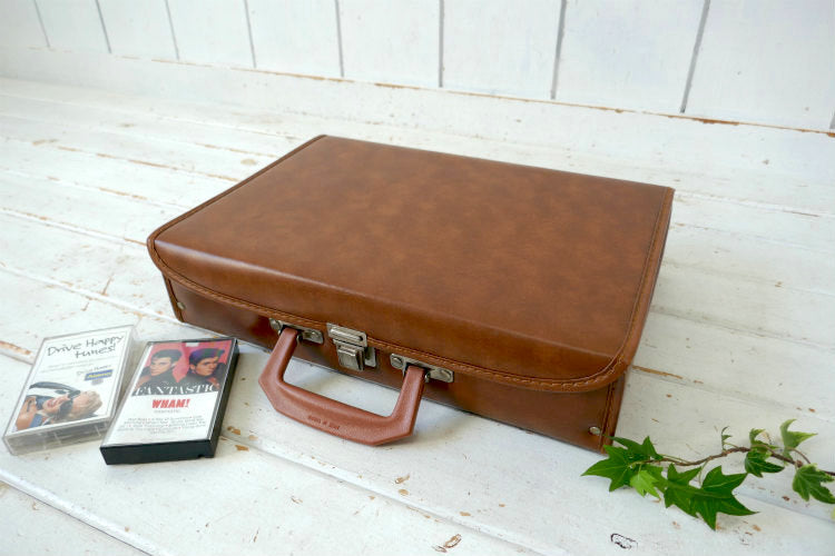 レトロ ブラウンカラー フェイクレザー 70's 80's ヴィンテージ カセットテープケース 収納ケース トランク