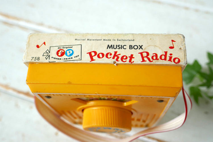 アメリカ西海岸・カリフォルニア州・ロサンゼルス郊外で見つけました・・アメリカの玩具メーカー『フィッシャープライス社』の【MUSIC BOX ・Pocket Radio】ヴィンテージ・ポケットラジオ型・オルゴールです。