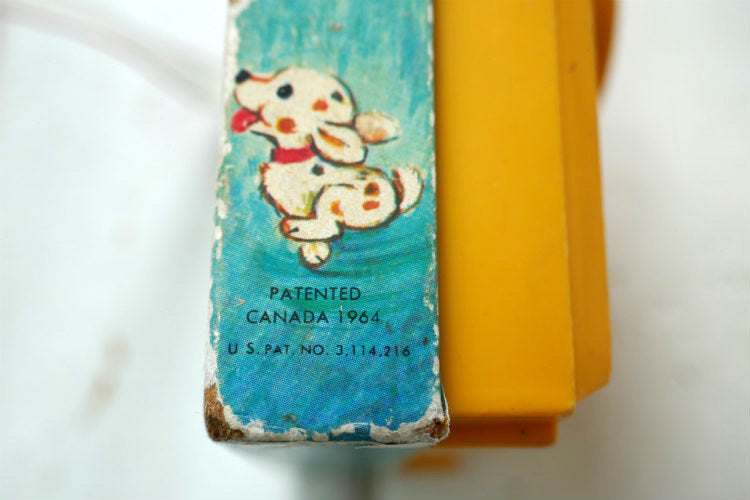 上部に【Musical Movement Made In Switzerland / MUSIC BOX Pocket Radip / An Original FISHER・PRICE TOY】、ボトムに【MADE IN U.S.A. ©'70 FISHER・PRICE TOYS / EAST AURORA N.Y. U.S.DES.PAT.212.892】、左サイドに【PATENTED CANADA 1964 US PAT. NO.3.11.216】とございます。