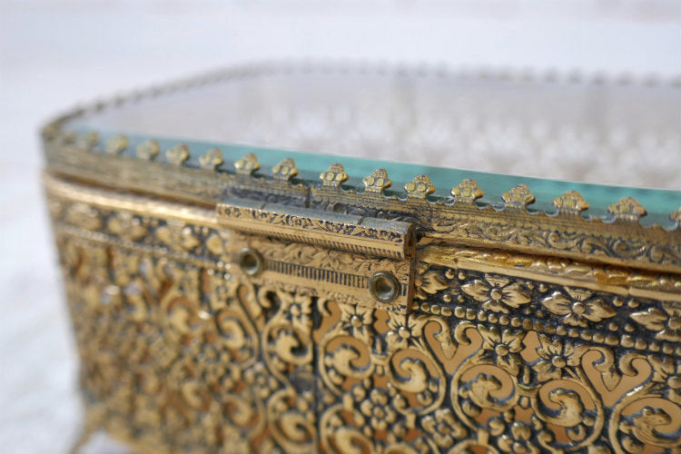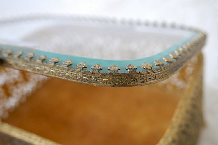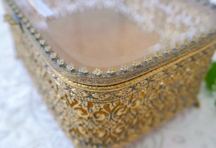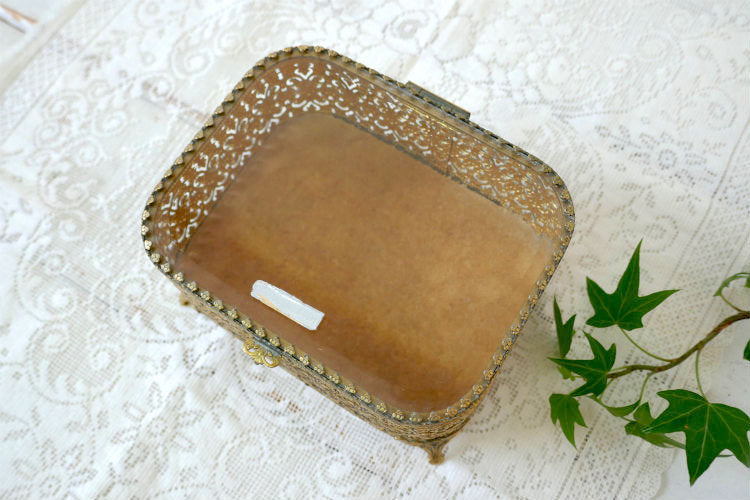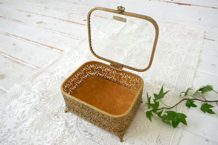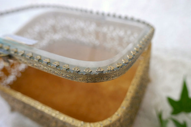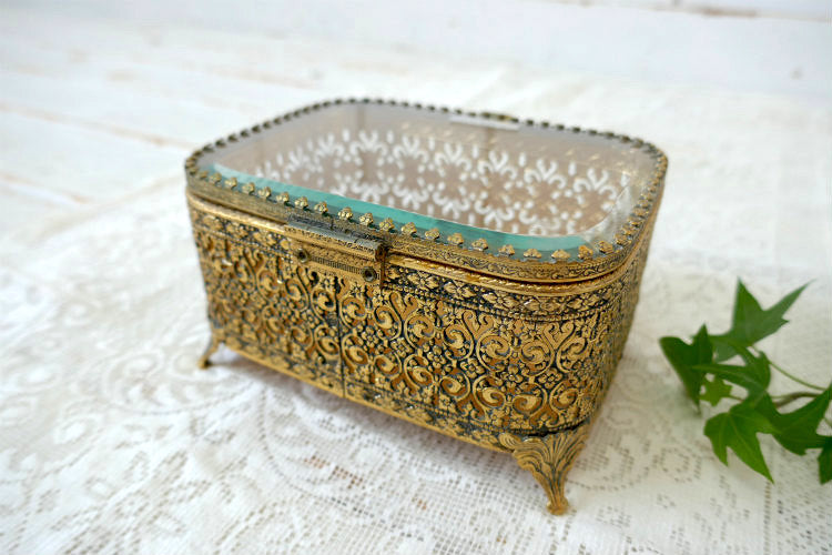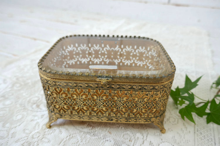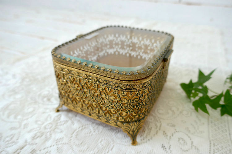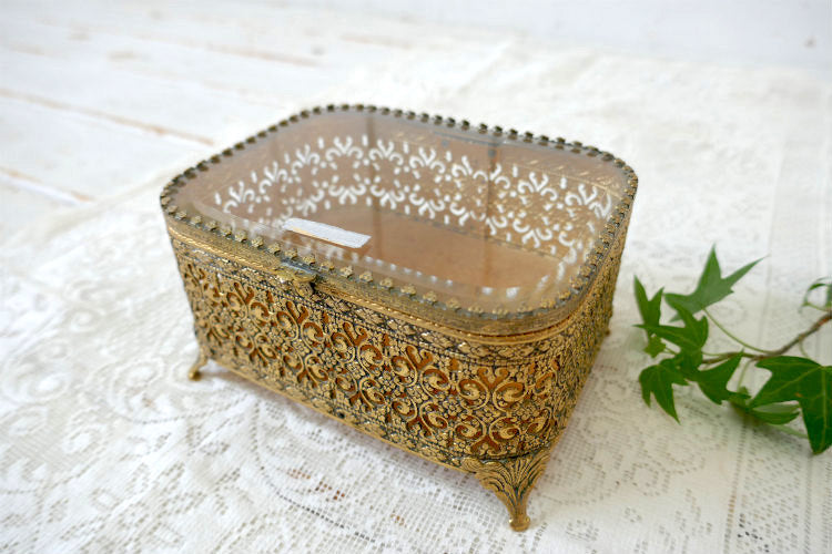 ベベルガラス 24金 ゴールドプレート 脚付き アンティーク ジュエリーボックス 宝石箱 ジュエリーケース USA