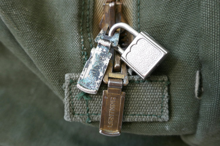 ジッパー部分に小さな南京錠が付いておりますが、鍵がございませんので解錠できません。