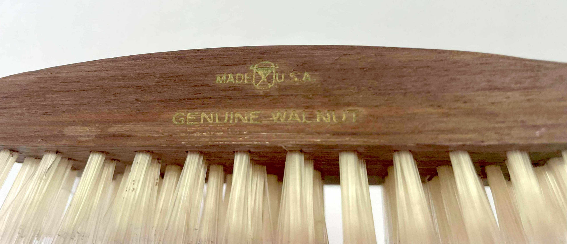 内側に、ソープケース・歯ブラシ・ウォルナット製ブラシ(GENUNE WALNUT/MADE IN USA)・コーム・コットン製100%ハンドタオル、全5点が入っています。