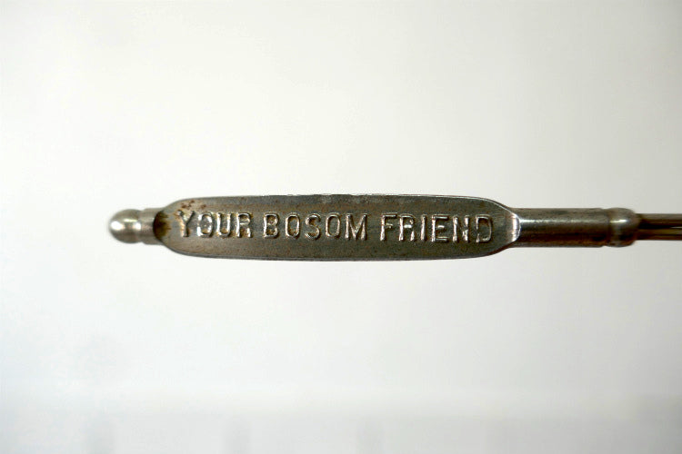 アメリカ西海岸・カリフォルニア州・サンフランシスコで見つけました・・" HARRY COFFEE/YOUR BOSOM FRIEND"メッセージ付きのメタル製・ノベルティ・ヴィンテージ・ボタンフックです。