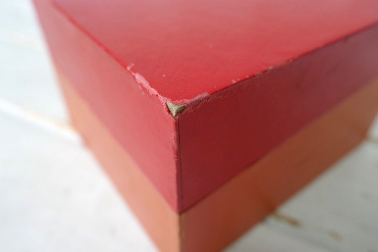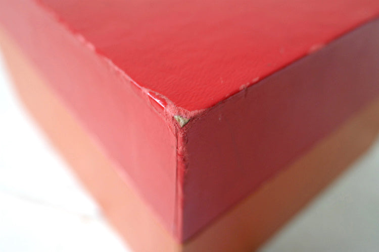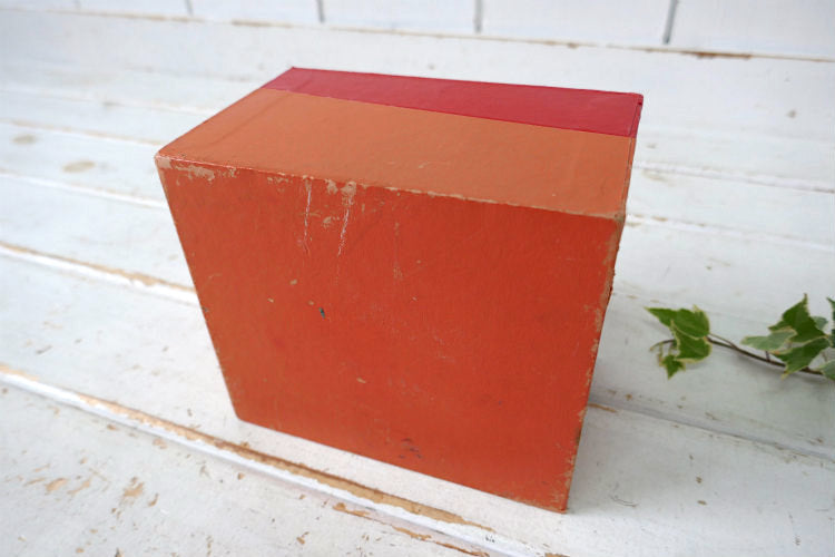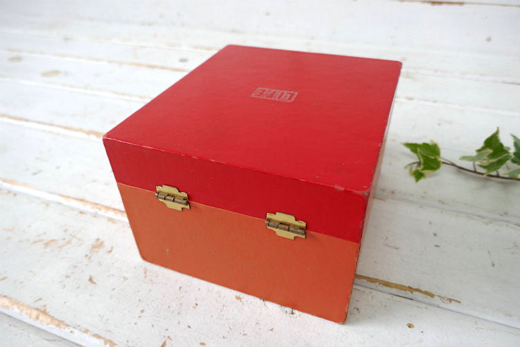 木製&厚紙製で、ケース下部はオレンジカラー、カバー部分はレッドです。