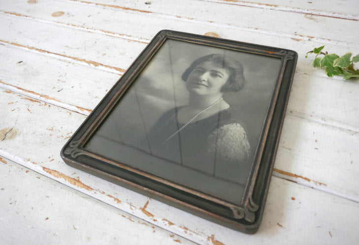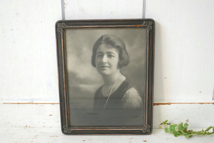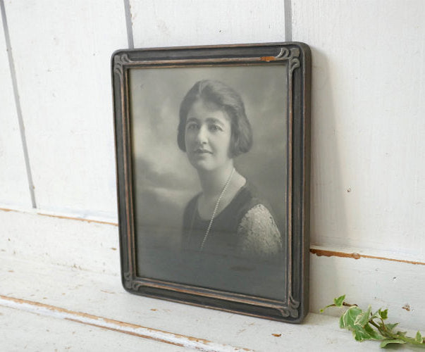 アールヌーヴォー デザイン モノクロ 写真入り 木製 手彫り アンティーク フォトフレーム 額縁 ピクチャーフレーム ノスタルジック USA