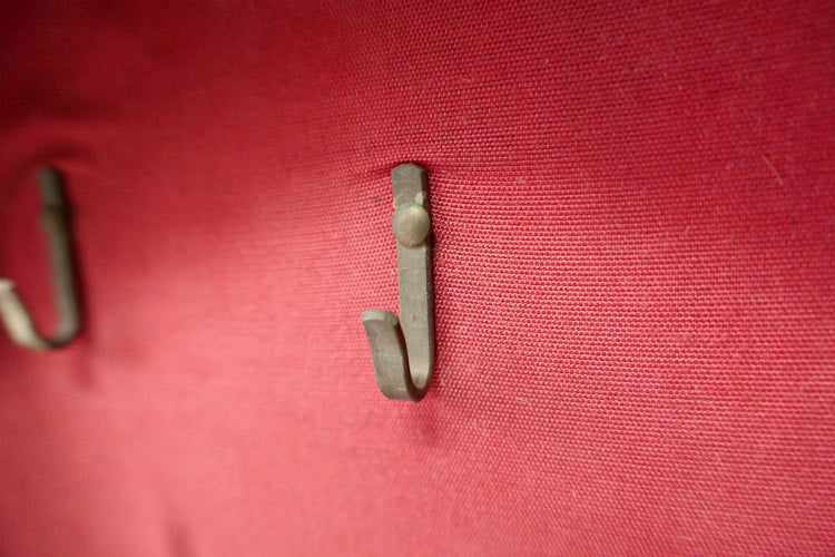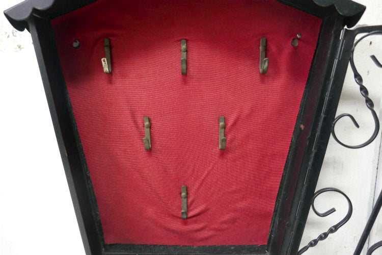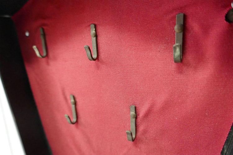 内張はワインレッドカラーの生地が貼られており、真鍮製のキーフックが6本付いています。