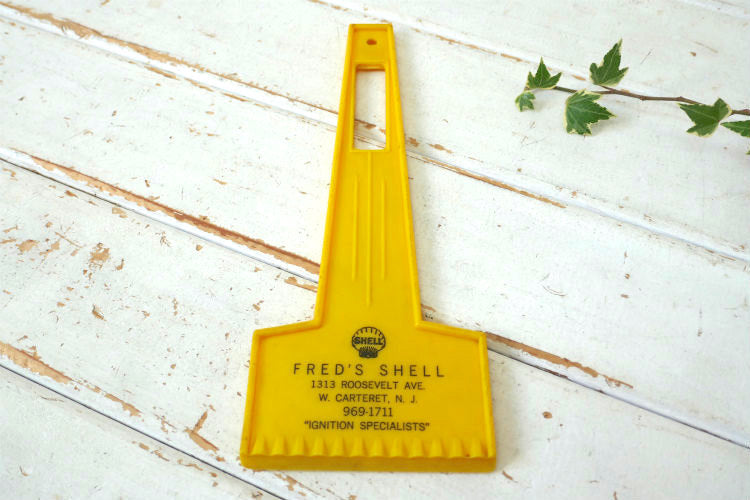 アメリカ西海岸・カリフォルニア州・サンフランシスコで見つけました・・『FRED'S SHELL』のプラスティック製・アドバタイジング ・ヴィンテージ・アイス スクレーパーです。