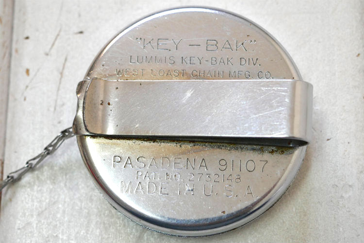 【″KEY-BAK″ LUMMIS KEY-BAK DIV WEST COAST CHAIN MFG. CO. PASADENA 91107 PAT. NO. 2732148 MADE IN U.S.A.】と刻印が入っています。